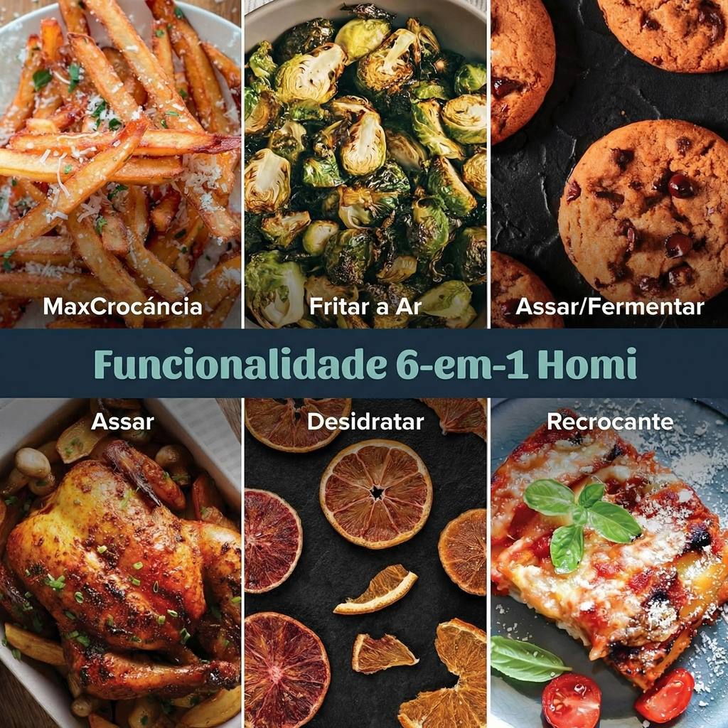 Air Fryer Modular 6-em-1. Do congelador à crocância em minutos, sem toxinas.