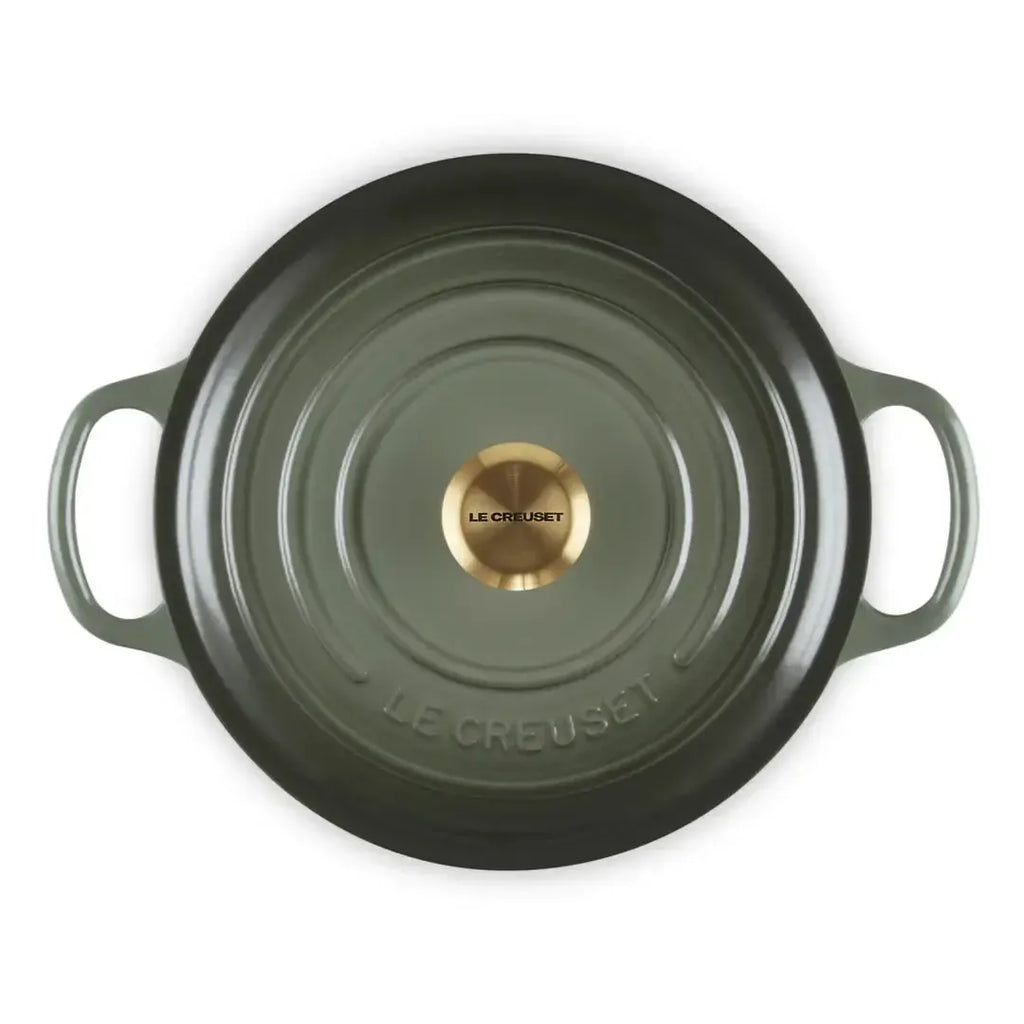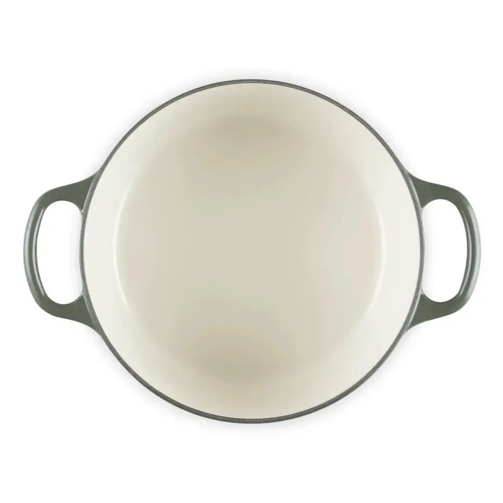 Delicie-se com a beleza subtil de Thyme, cor da Le Creuset que é um tom inspirado na elegância natural das ervas frescas do jardim, trazendo para a cozinha uma atmosfera harmoniosa e acolhedora. Com sua beleza sutil e cor delicada, evoca um estilo de vida simples e sofisticado, onde o jardim se funde naturalmente ao ambiente culinário, adicionando um toque de frescor e natureza ao seu espaço.